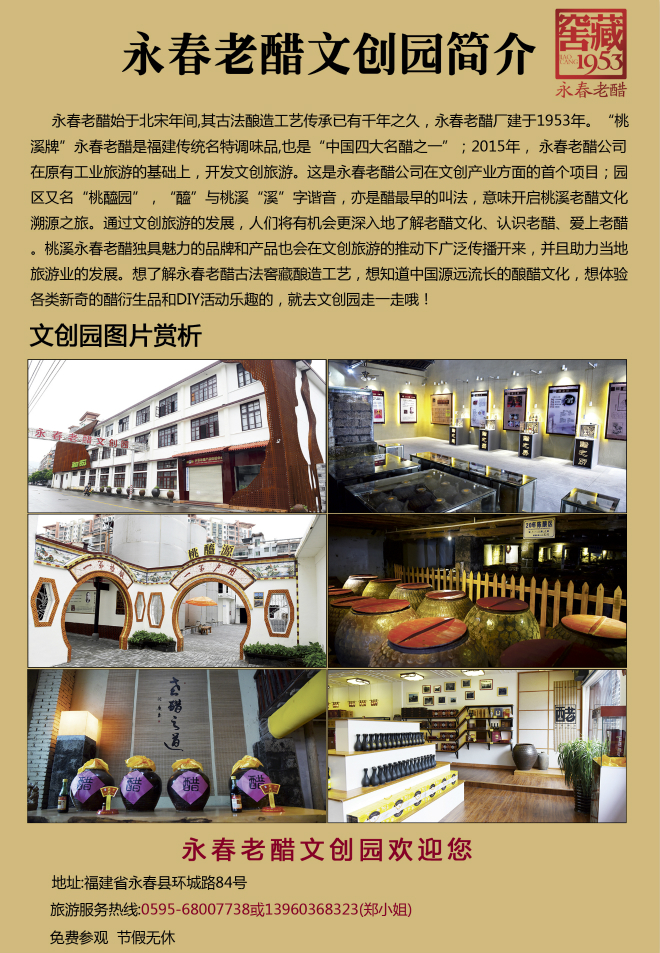 熱烈慶祝永春老醋文創(chuàng)園獲評“福建省首批優(yōu)秀創(chuàng)意旅游產品”