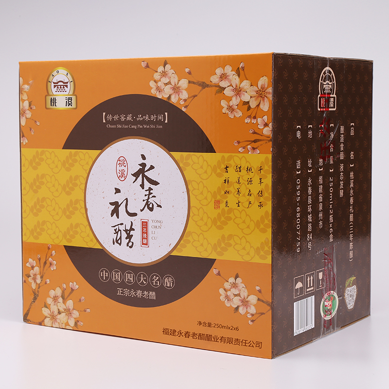 選用優(yōu)質(zhì)糯米、紅曲、原產(chǎn)地水源等為原料,傳承千年獨特釀造工藝(液態(tài)深層發(fā)酵),純糧釀造,歷經(jīng)五十多道生產(chǎn)流程,經(jīng)年發(fā)酵陳釀,平均酸度5.0-6.5。故出此風味獨特,濃酸回甜,無添加劑,品質(zhì)上乘的桃溪永春老醋。具有酸、香、甜、鮮、色的特點,非常適合增味助鮮。采用精美的禮盒包裝,送禮自用兩相宜!送禮親朋,有禮有面!