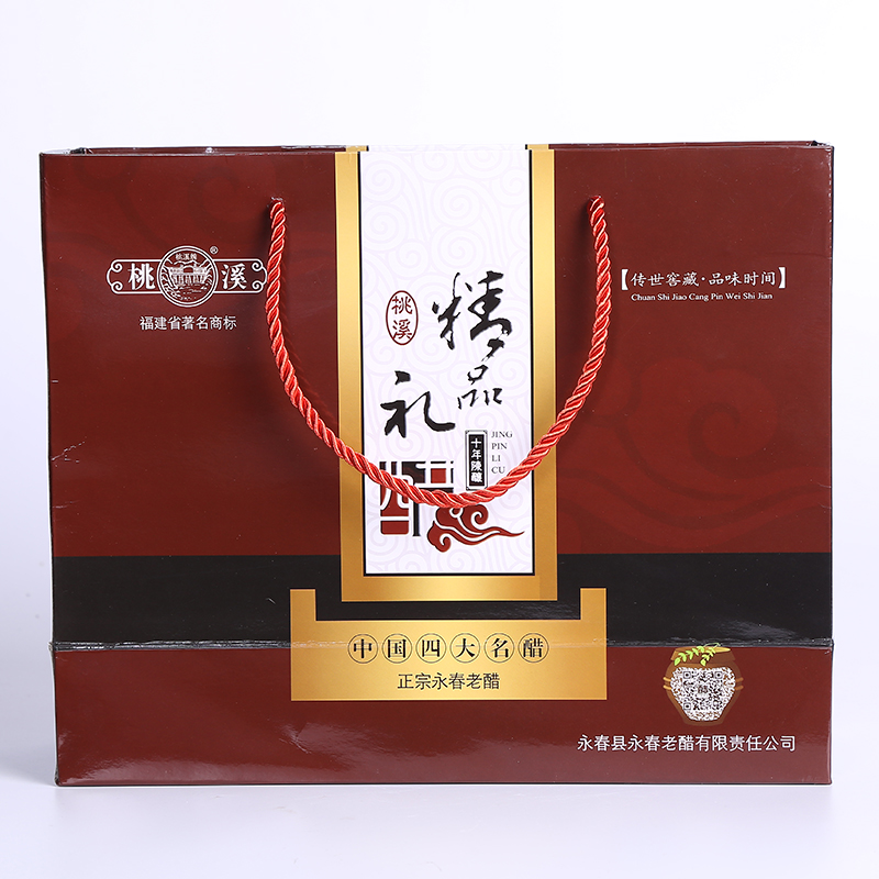 選用優(yōu)質(zhì)糯米、紅曲、原產(chǎn)地水源等為原料,傳承千年獨(dú)特釀造工藝(液態(tài)深層發(fā)酵),純糧釀造,歷經(jīng)五十多道生產(chǎn)流程,經(jīng)年發(fā)酵陳釀,平均酸度5.0-6.5。故出此風(fēng)味獨(dú)特,濃酸回甜,無(wú)添加劑,品質(zhì)上乘的桃溪永春老醋。具有酸、香、甜、鮮、色的特點(diǎn),非常適合增味助鮮。采用精美的禮盒包裝,送禮自用兩相宜!送禮親朋,有禮有面!