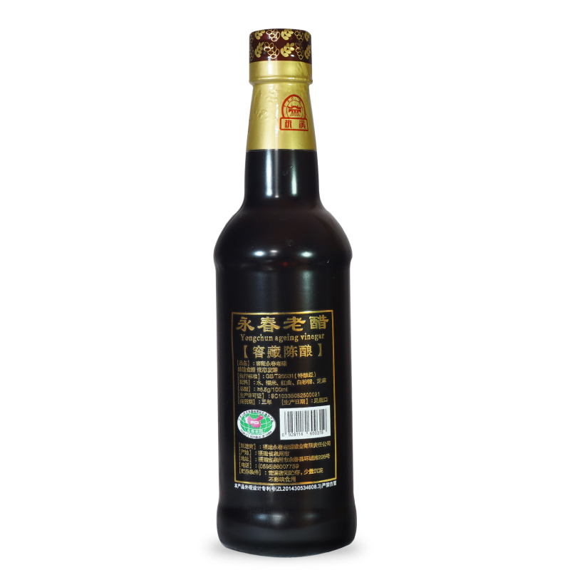 選用優(yōu)質(zhì)糯米、紅曲、芝麻、原產(chǎn)地水源等為原料,傳承千年獨(dú)特釀造工藝(液態(tài)深層發(fā)酵),純糧釀造;在半地下室的窖藏車間里,按照古法釀造工藝,純手工制醋,經(jīng)年累月,邊發(fā)酵邊陳釀,平均陳釀時(shí)間十年起,酸度6.5左右。故產(chǎn)出的老醋香味醇厚,濃酸微甜,零添加劑,回味悠長,是永春老醋中的精品。